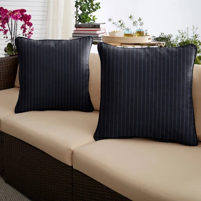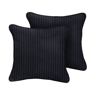 - Square throw pillows in a deep shade of blue with contrasting blue stripes
