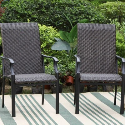 This chair offers comfy feeling when it serves as a dining chair or a conversation seat from Captiva Designs.The seat and back of the dining chair is made of PE rattan.It feels neither too hard nor too soft.You will not feel tired or uneasy if you sit on it for a long time.Steel frame and powder coating offer the stable and durable applying.