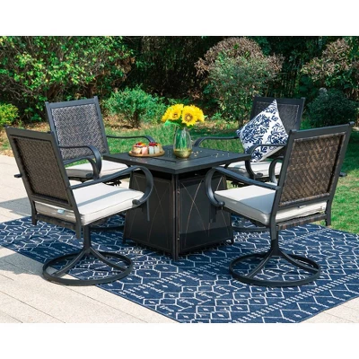 The fire pit set is especially used when it is cold.The fire pit table is multifunctional,fire pit table or dinning table.It is complete steel construced supporting the stablity and durability.It is push button piezo ignited and designed with automatic gas cut-off device.In winter this fire pit set is undoubtedly the premium heater when you sit around outdoor.