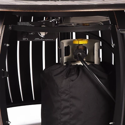 - This premium fire table set has a black antique copper finish applied via durable powder coat