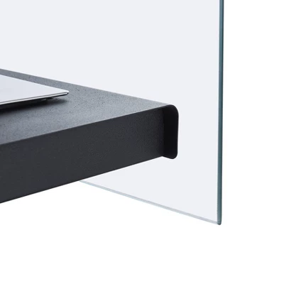 - Black metal fire pit with clear glass panels