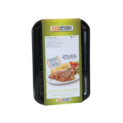 Treat your family to a scrumptious meal with the Broil ‘N Bake Oven Replacement Pan from Range Kleen. Perfect to cook fish, beef, pork, roasts or veggies, this porcelain broiler pan allows you to quickly cook food in a healthier way. Whether used for a delicious grill-like finish on meat or vegetables, this nonstick porcelain broil rack and drip tray makes it easy and convenient to prepare a savory and evenly cooked meal.