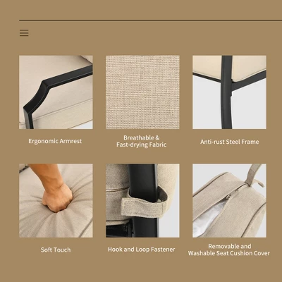 - Upgraded Comfort: The comfortable back cushions and seat cushions are padded with thick and soft foams, which makes them come with good resilience. Likewise, the skin-friendly olefin fabric brings breathable sitting experience. And the hook and loop fasteners prevent seat cushions from moving when you sitting on it.