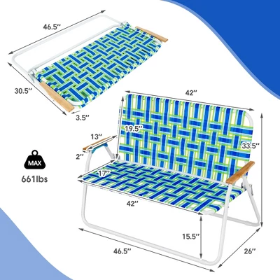 Costway 2-Person Folding Chair With Armrest 661 LBS Load Capacity For Camping Beach