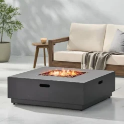 Wellington Square 33″ Iron Gas Fire Pit Gray – Christopher Knight Home