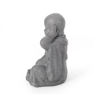 Bring a sense of serenity to any outdoor space with an accessory of overflowing charm and beautifully intricate details. Carefully crafted from cast stone, our garden statue features a charismatic monk design that is covering his ears so he will hear no evil. This statue offers a durable structure and weather-resistant properties making this a perfect addition to your backyard or patio space. Finished with a neutral wash, this exquisite garden accessory will easily bring your decor to the next level.