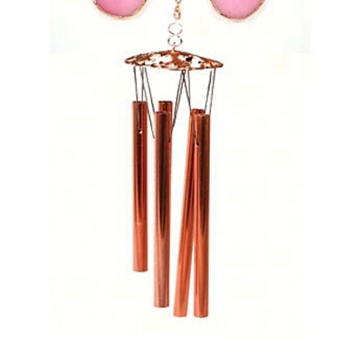 Beautiful Windchime With Copper Accents Topped With A Pretty Purple And Pink Stain Glass Butterfly.. New. Comes Packaged In A Box.. Measurements 18.0 In H X 6.25 In W X 3.0 In D. . No Assembly Required. Imported