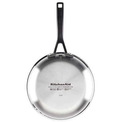 Build layers of flavor with the KitchenAid 5-Ply Clad Stainless Steel Nonstick Frying Pan designed for precision cooking with exceptional base-to-rim heat conduction. Crafted from 5-layers of heat conductive metal throughout, this heavy-gauge induction skillet is built to fuel endless possibilities in the kitchen while providing superior heat retention. Skillet is finished with triple layer nonstick that is strong enough to stand up to daily wear and tear. Unique black stainless steel handles are dual-riveted and provide a sleek table top presentation. Sealed rims prevent corrosion, allowing for frying pan to be truly dishwasher safe. Oven safe to 500°F for versatility, freedom, and creative cooking.