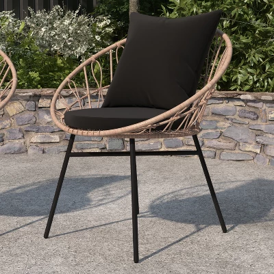 The laid back persona of these rope rattan chairs is sure to add a sense of relaxation to your lounging space, whether it’s indoors or out. Faux rattan wrapped framing evokes classic style while offering durability and all-weather purpose. Thick outdoor rated plush seat and back cushions are a perfect compliment to the deep circular seat that mimics the look of a papasan chair. Easily assembles in less than ten minutes per piece and wipes clean with a damp cloth. Zippered cushion covers can be hand washed and air dried.