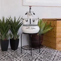 36″ Buckets With Faucet Tabletop Fountain White – Alpine Corporation