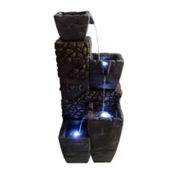 43″ Indoor/Outdoor 4-Tier Cascading Vase Fountain With LED Lights Gray – Alpine Corporation