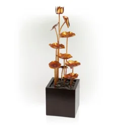 43″ Metal Cascading Leaves Fountain With Stones Copper – Alpine Corporation