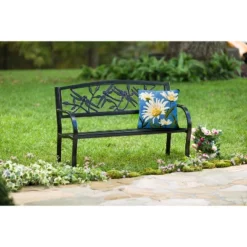 Costway Patio Garden Bench Chair Style Porch Cast Aluminum Outdoor Rose Antique Green