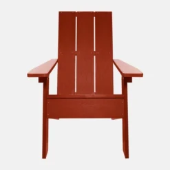Italica 3pc Set With Modern Adirondack Chair, Side Table & Folding Ottoman – Rustic Red – Highwood