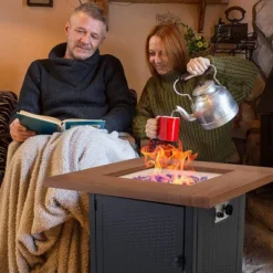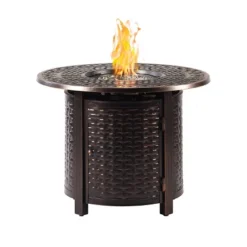 5pc Outdoor Conversation Set With Swivel Chairs & 28″ Square Propane Fire Table – Captiva Designs