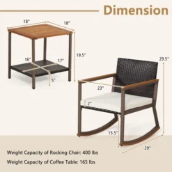 Costway 3PCS Patio Rattan Rocking Chair Bistro Set Armrest Cushion Table With Storage Shelf