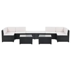 4pc Outdoor Wicker Conversation Set With Cushions – Beige – GODEER