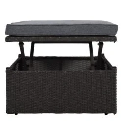 4pc Outdoor Wicker Conversation Set With Cushions – Gray – GODEER