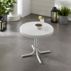 Emma And Oliver Commercial Grade 35.25″ RD Indoor-Outdoor Steel Patio Table – Umbrella Hole