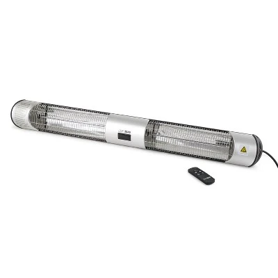 Keep warm while relaxing outdoors with the HeatMate Graphite Outdoor Patio Heater from Sengoku.Keep comfortable and enjoy your outdoor spaces when the weather starts to get cold. This electric outdoor heater utilizes radiant graphite technology to heat up your outdoor patio or deck area. Adjust the electric heater to your ideal settings using the 0 to 24-hour timer and 50-percent or 100-percent heat settings. A built-in digital thermostat displays the current temperature, so you can adjust the heat as needed. Use the included remote control to adjust the temperature without having to get up out of your seat. This portable graphite patio heater can be mounted on almost any outdoor wall using the included metal fittings, or placed on a tripod (not included) for more portable use. Overall, the outdoor heater measures 46 inches long, 5.3 inches wide, and 5.3 inches tall to provide your deck or patio area with consistent heat. Heat your outdoor space with less electricity with the HeatMate Graphite Outdoor Patio Heater from Sengoku.