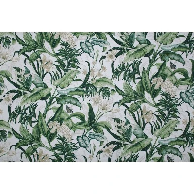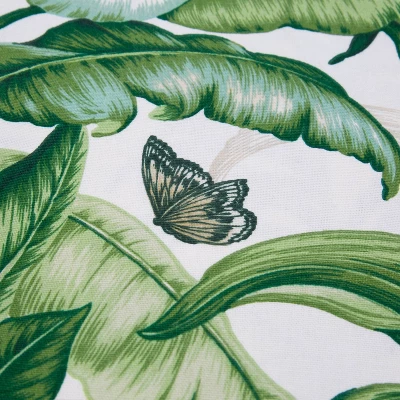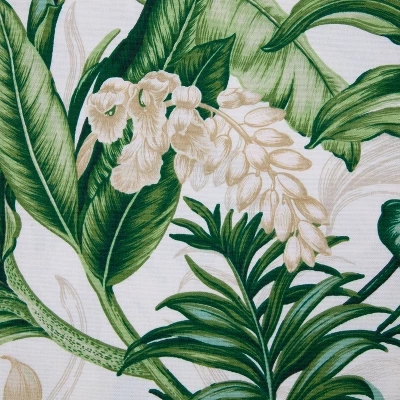 Bring vibrant elegance to any room with the magnificent tropical beauty of this set of two tufted chair pads. Sophisticated leaves in glorious greens and flowers in neutral shades are set against an off-white ground for an attractive botanical look. Made from 100% cotton, additional features of these tufted chair pads include 14-inch ties to secure the cushions to your furniture and recycled polyester fiber fill with a sewn seam closure.