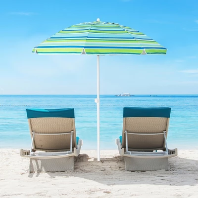 - Due to folding design, the beach umbrella can be quickly folded into a compact size and stored in the carrying bag. Weighing only 5.5 lbs, this lightweight beach umbrella can be effortlessly carry to wherever you want. Hence, it is perfect for beach, deck, poolside, etc.