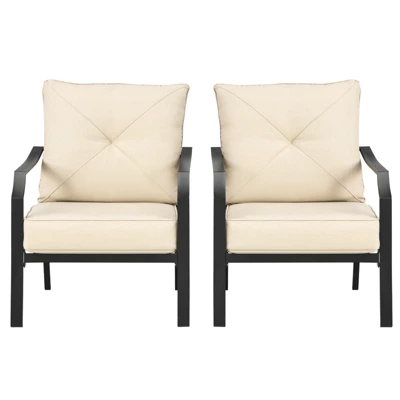 The widened backrest, cozy armrests, large seats and soft cushions make these comfortable outdoor chairs. After long term use, the covers of the seat cushions can be removed for easy maintenance. Furthermore, the anti-rust iron frame allows you to use them outdoors, such as patio, garden and backyard, sharing happy moments with your loved one.