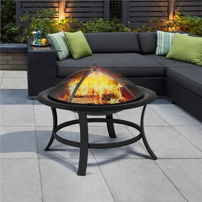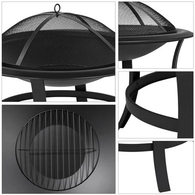 Yaheetech 29″ Round Fire Pits Fire Bowl With Spark Screen For Backyard Patio Camping