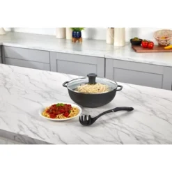 - Large, stay-cool loop handles designed for easy maneuvering and control while wearing oven mitts